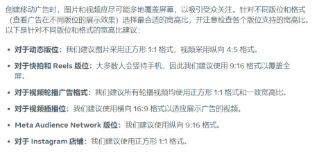 Ins提供多种广告格式,包括Feed广告、Stories广告、IGTV广告等(详细的Ins广告格式说明,见本公众号往期文章:TikTok vs Instagram,你更喜欢哪个?)。根据您的目标和受众选择合适的广告格式,包括恰当的素材尺寸,以确保广告自然融入用户的浏览体验。